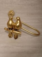 Zarif kuş figürleriyle tasarlanan dekoratif kol bağı, perdelerinize şıklık ve estetik bir dokunuş katar. Dal üzerinde yan yana duran iki kuş figürü, mekâna sıcak ve zarif bir hava kazandırırken altın renkli metal yapısı ile lüks bir görünüm sunar.