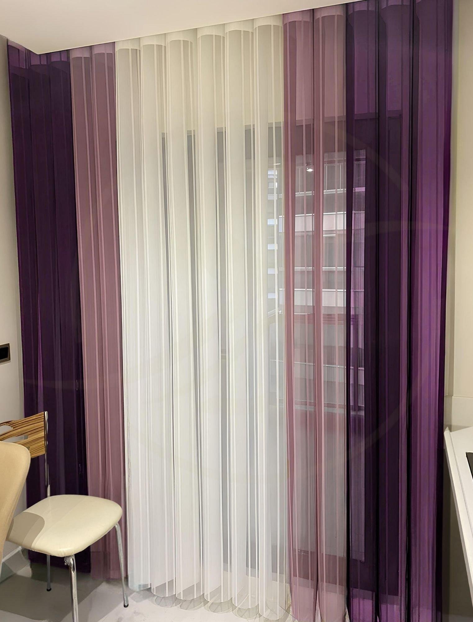 Mor – Pembe – Beyaz Tül Dikey Perde